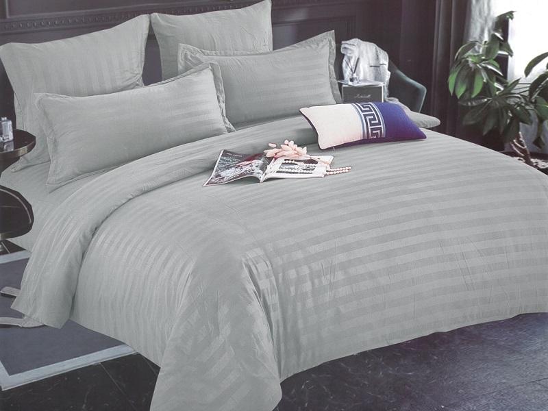 Постельное белье на резинке из страйп-сатина ПАНДОРА серое евро