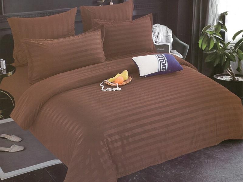 Постельное белье на резинке из страйп-сатина ПАНДОРА шоколад евро