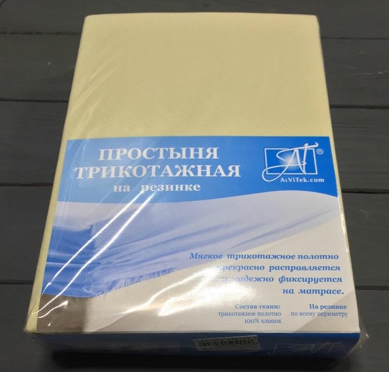 Простыня на резинке трикотажная АЛЬВИТЕК ПТР-КРЕМ-180 кремовая 180х200